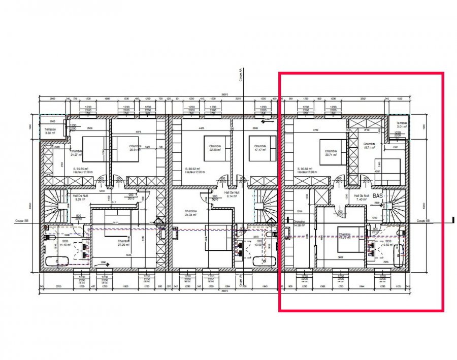 Le premier étage se compose d'un hall de nuit, de trois chambres à coucher ainsi que d'une salle de bains, offrant un espace nuit confortable pour toute la famille.