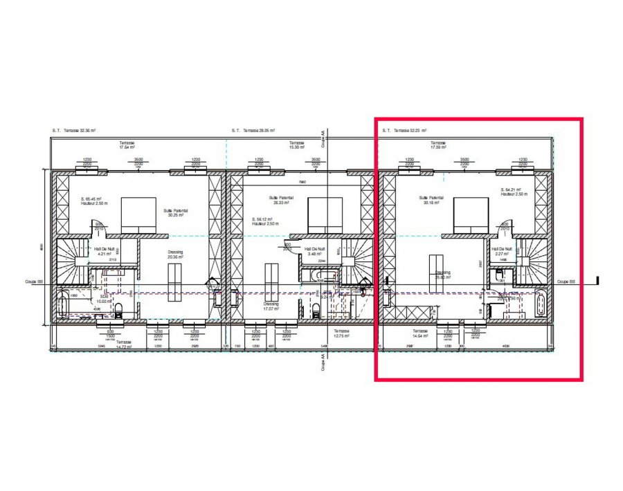 Au deuxième étage, vous trouverez un hall de nuit menant à une spacieuse suite parentale. Celle-ci dispose de son propre dressing, d'une salle de bains privative et d'un accès direct à une agréable terrasse de 17,59m², parfaite pour créer un espace intime et relaxant.